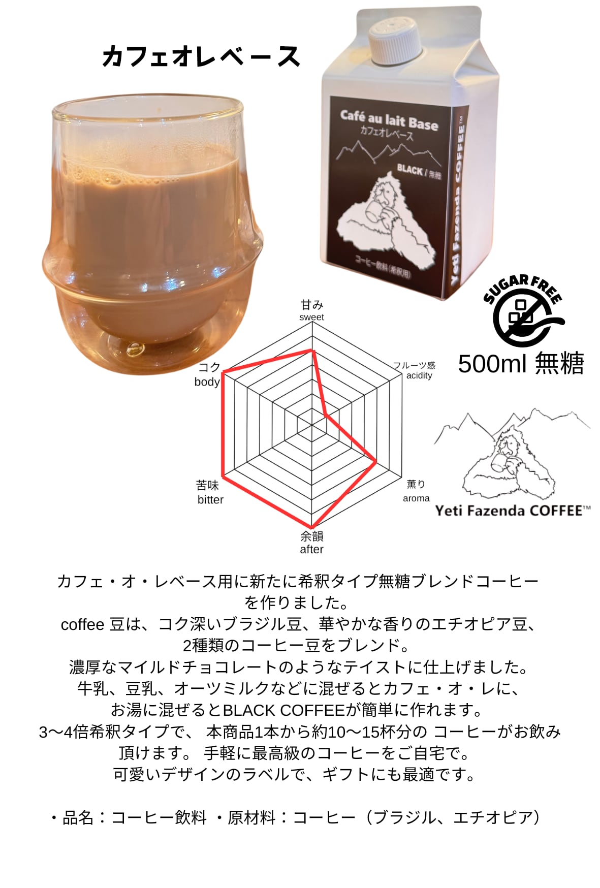 カフェオレベース 500ml 希釈タイプ BLACK無糖