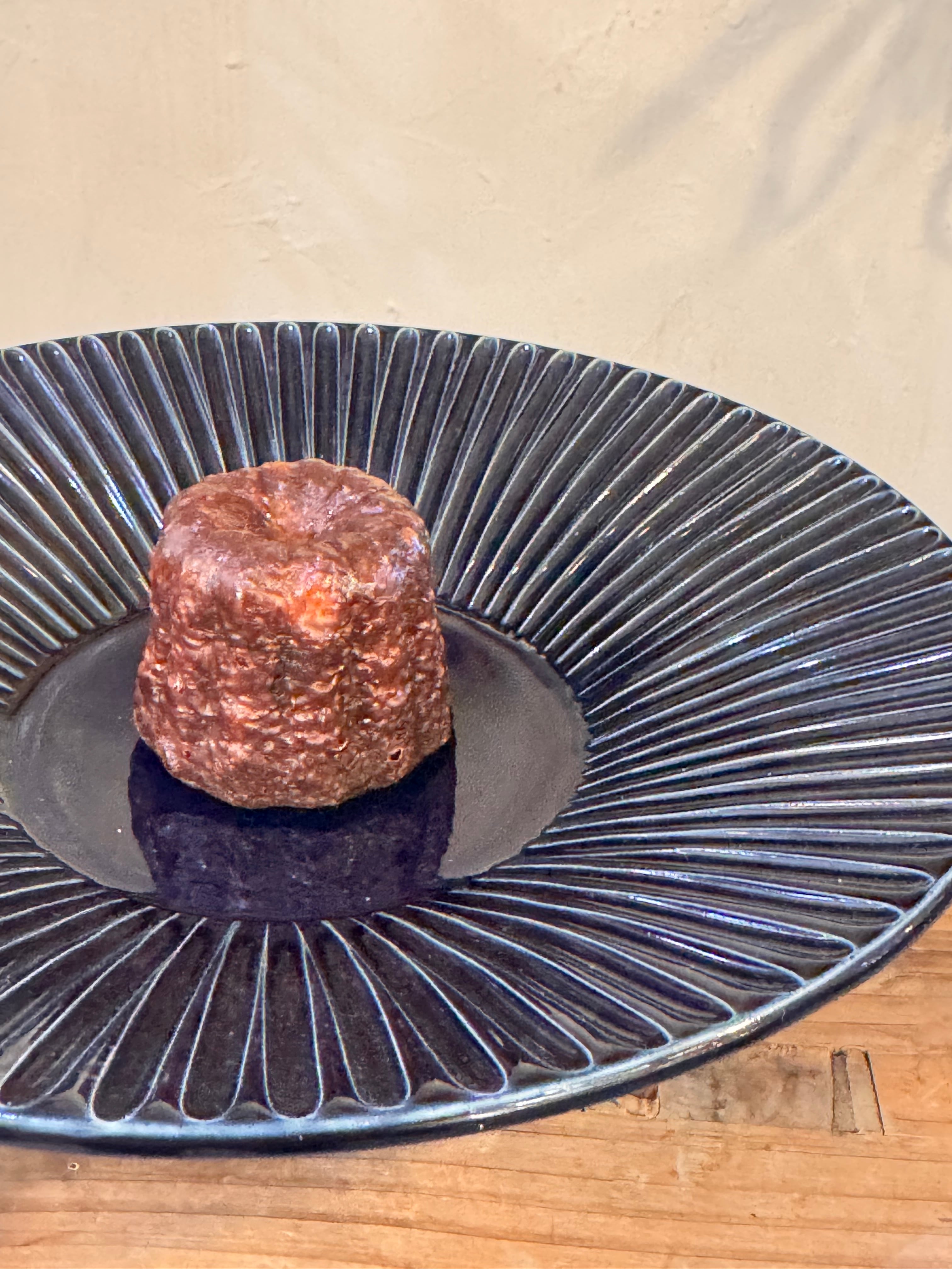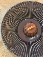 バニラ生地のカヌレにフランス産のチョコレートとオレンジをトッピング